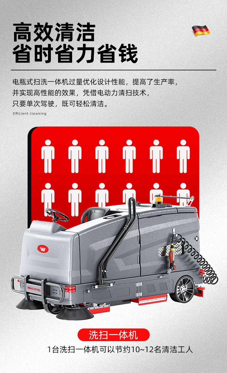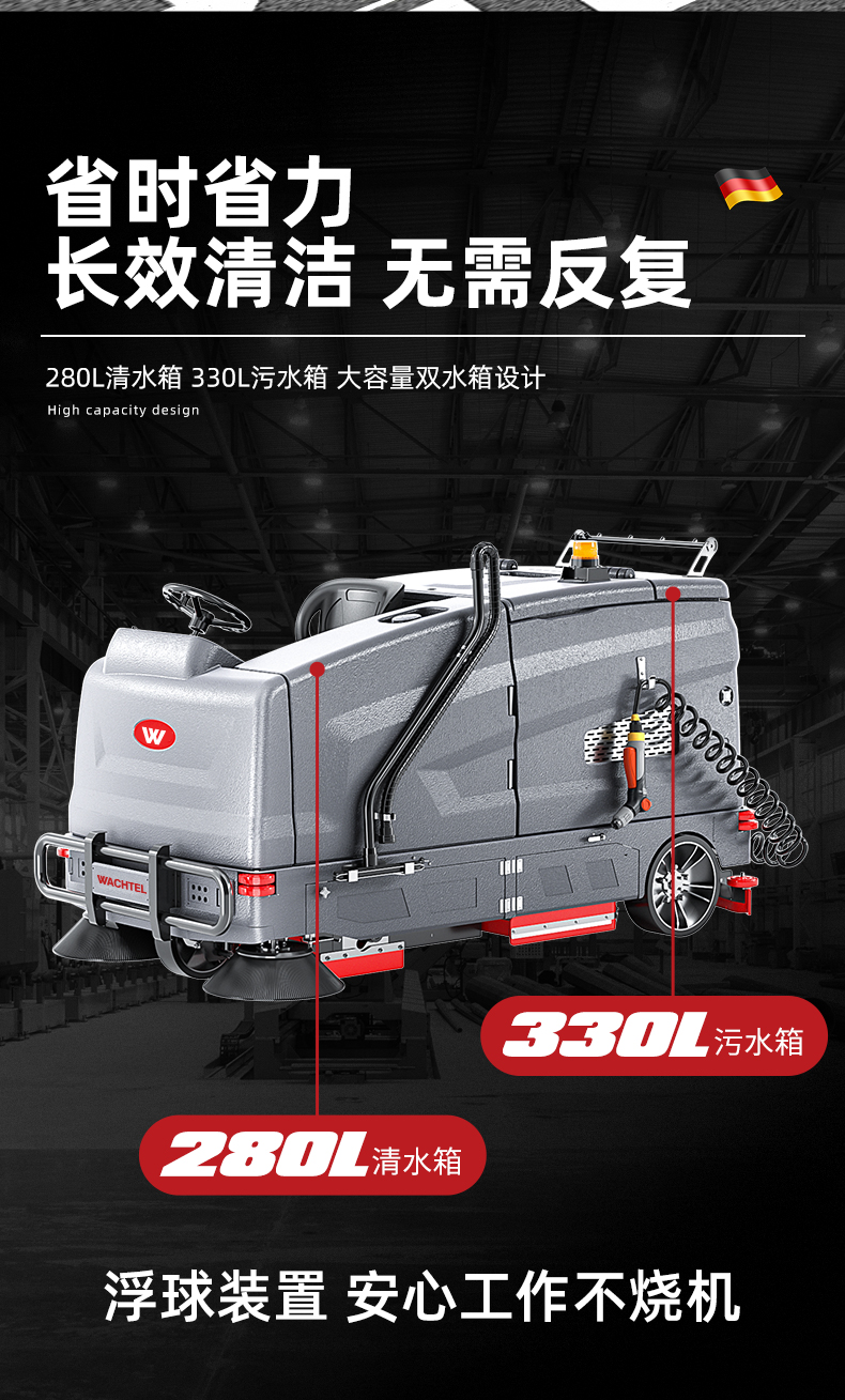 品牌:WACHTEL 名稱:超大型駕駛式洗掃一體機SX1450 型號: SX1450 清掃寬度:1450mm 清潔效率:12800m²/h 工作時間:3~6h 水箱容量:280L/330L(清/污) 電池:意大利OM鋰電 電機::德國瓦赫電機 整機重量:1200kg 產品尺寸:2800*1450*1590mm 適用清潔場所: 商場 超市 車庫 車間 辦公樓等